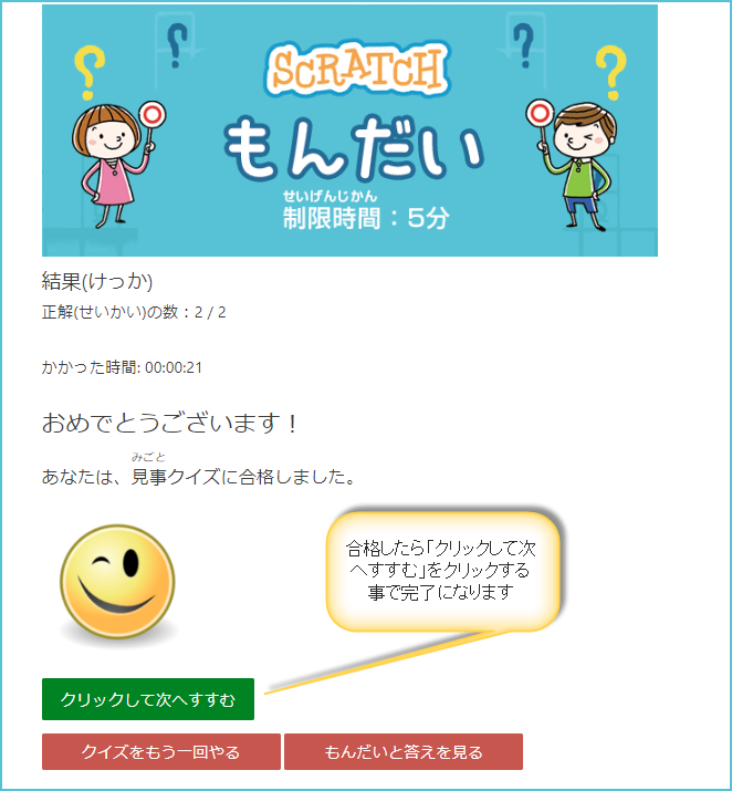 クイズは、全問正解しないと次のレッスンへ進むことはできません。