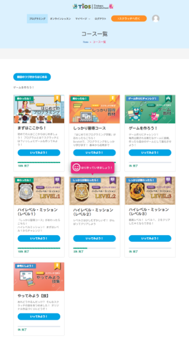 学習できるコースが一覧表示されます。